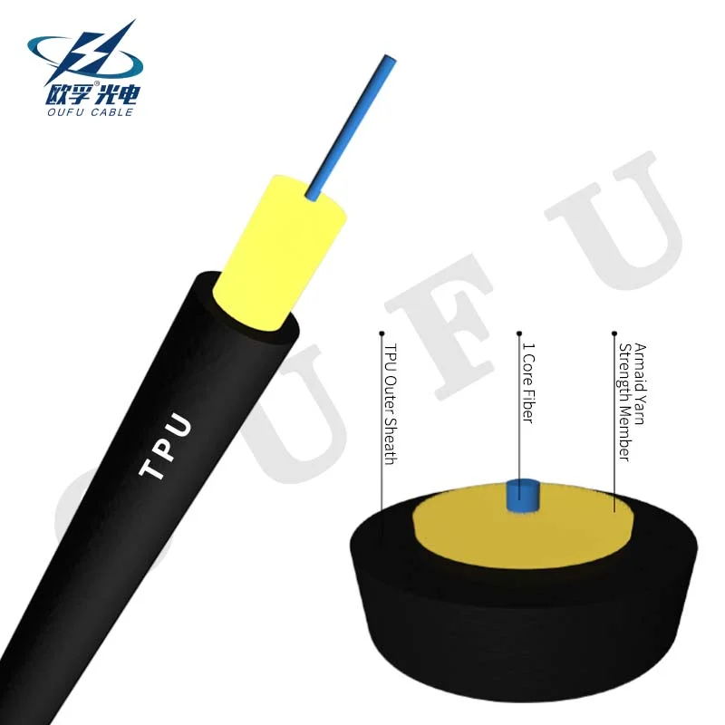 This cable is made by evenly applying strands of Aramid yarns as the strength member over 900μm tight buffer fibers and then is completed with sheath.